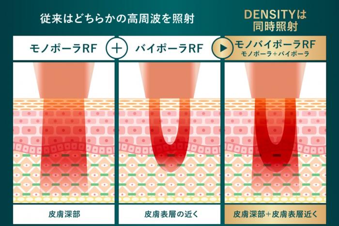 DENSITYで照射する高周波エネルギーは、従来のたるみ治療機器と比べ高いことが特長です。